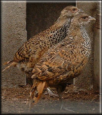 Heden ten dage is het aantal Cheerfazanten in gevangenschap niet bijzonder groot. Het zijn vrij gemakkelijk te houden nogal luidruchtige fazanten die meestal in koppels of trio’s worden gehouden. Vooral in de broedtijd kunnen ze op elk voor hun vreemd geluid reageren met hun oorverdovende kabaal en gekrakeel. Omdat Cheerfazanten in het wild in groepen leven hebben wij de proef op de som genomen en een kwartet van 2 hanen en 2 hennen samengesteld. Het betreft hier 2 hanen die we uit Duitsland en 2 hennen die we uit Engeland ontvangen hebben. Dit kwartet is het eerste jaar naast een ander koppel gehuisvest geweest. De twee hanen van het kwartet waren beide agressief tegenover de haan in de aangrenzende volière, maar niet tegenover elkaar. Van het kwartet hebben beide hennen het eerste jaar bevruchte eieren gelegd, en zijn er kuikens van geboren die kunstmatig grootgebracht zijn. Eind vorig jaar (2004) is dit kwartet in een beter geschikte volière ondergebracht met in de aangrenzende volières niet verwante soorten. Dit jaar (2005) tolereerde een van de twee hanen zijn broer niet meer, waardoor die noodgedwongen moest verhuizen. Nadat de eerste eieren die gelegd werden in de broedmachine uitgebroed waren, hebben we de eieren laten liggen. Toen er acht eieren in het nest lagen is een van de twee hennen begonnen met broeden. De tweede hen heeft nog vier eieren bijgelegd, en is toen bij de andere hen in hetzelfde nest gaan broeden. Na 26 dagen broeden werden er acht kuikens geboren die door de twee hennen en de haan zijn grootgebracht.